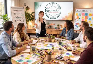 Des ateliers de coordination créative utilisant la pratique artistique pour aider les équipes à identifier leurs forces contextuelles, renforcer la confiance mutuelle et améliorer l'efficacité collective dans la conduite de leurs projets.