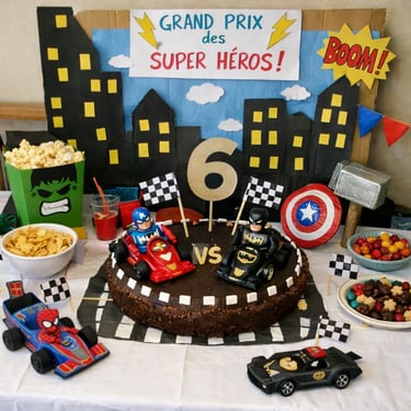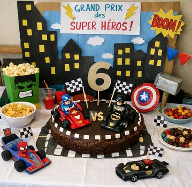 L'accompagnement de projet m'a permis de réaliser tous les éléments de décoration pour l'anniversaire de mon petit dernier de 6 ans sur le thème des "Super-Héros s'affrontent en F1" il était ravi et ses amis aussi.
